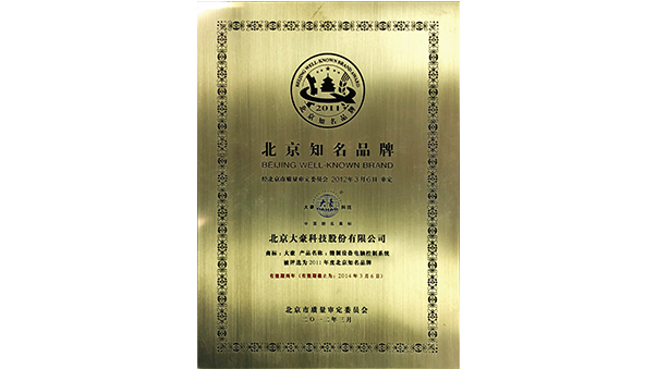 大豪公司被北京市质量审定委员会评为“北京知名品牌”