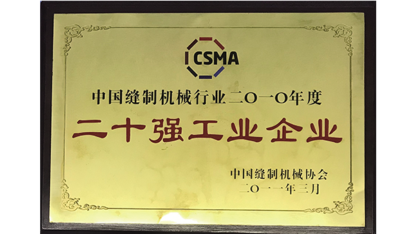 大豪公司被中国缝制机械协会评为“中国缝制机械行业二十强工业企业”
