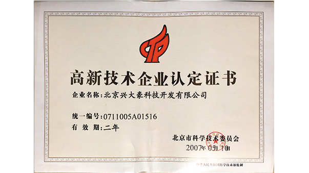 大豪公司被评为“北京市高新技术企业”