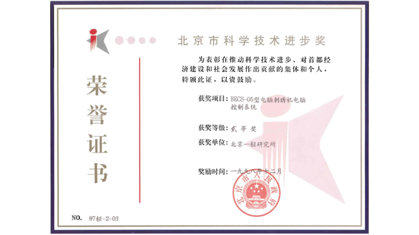 BECS-05型电脑刺绣机电脑控制系统被评为“北京市科学技术进步奖”