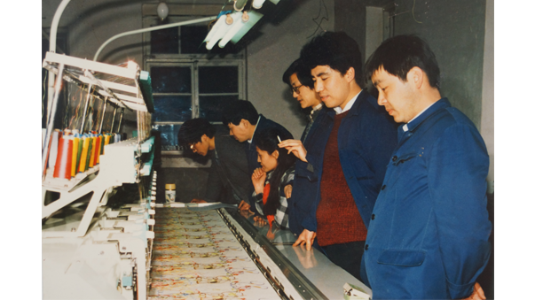 与青岛缝纫机厂合作开发成功中国第一台GY612型多头多色电脑刺绣机。