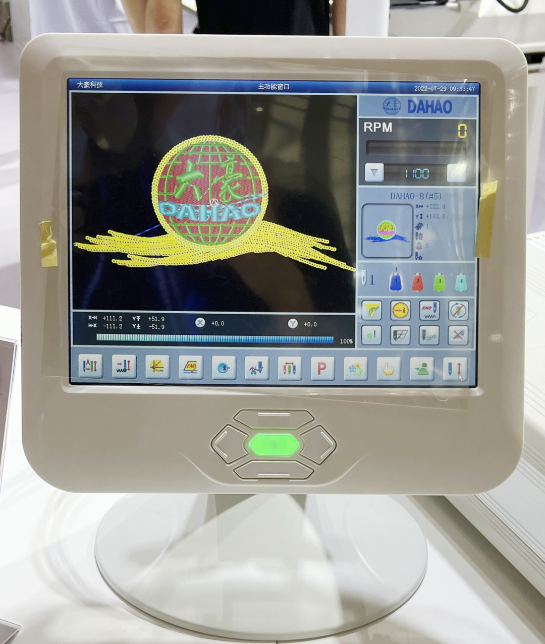同时,大豪还全力配合广大刺绣机整机厂家积极备展,携手兄弟企业共同亮相。应用大豪电控参展的刺绣机整机厂有越美、玛雅、宝轮、金傲宇、兆山、金誉、智宇、瑞克玛等。这些厂家展机几乎全部采用了大豪最新式的集成一体式电控,新推出了Mate电控高端智能刺绣、超高速毛巾绣,单头机刺绣机、烫片机、烫绣一体机等多款全新机型和多色金片、多色散珠、珠叠一体等最新款刺绣机特种绣装置,以及自动换底线技术、独立压脚技术、自动加油等一系列最新技术,展现了中国刺绣机制造业近两年的长足发展的成绩。