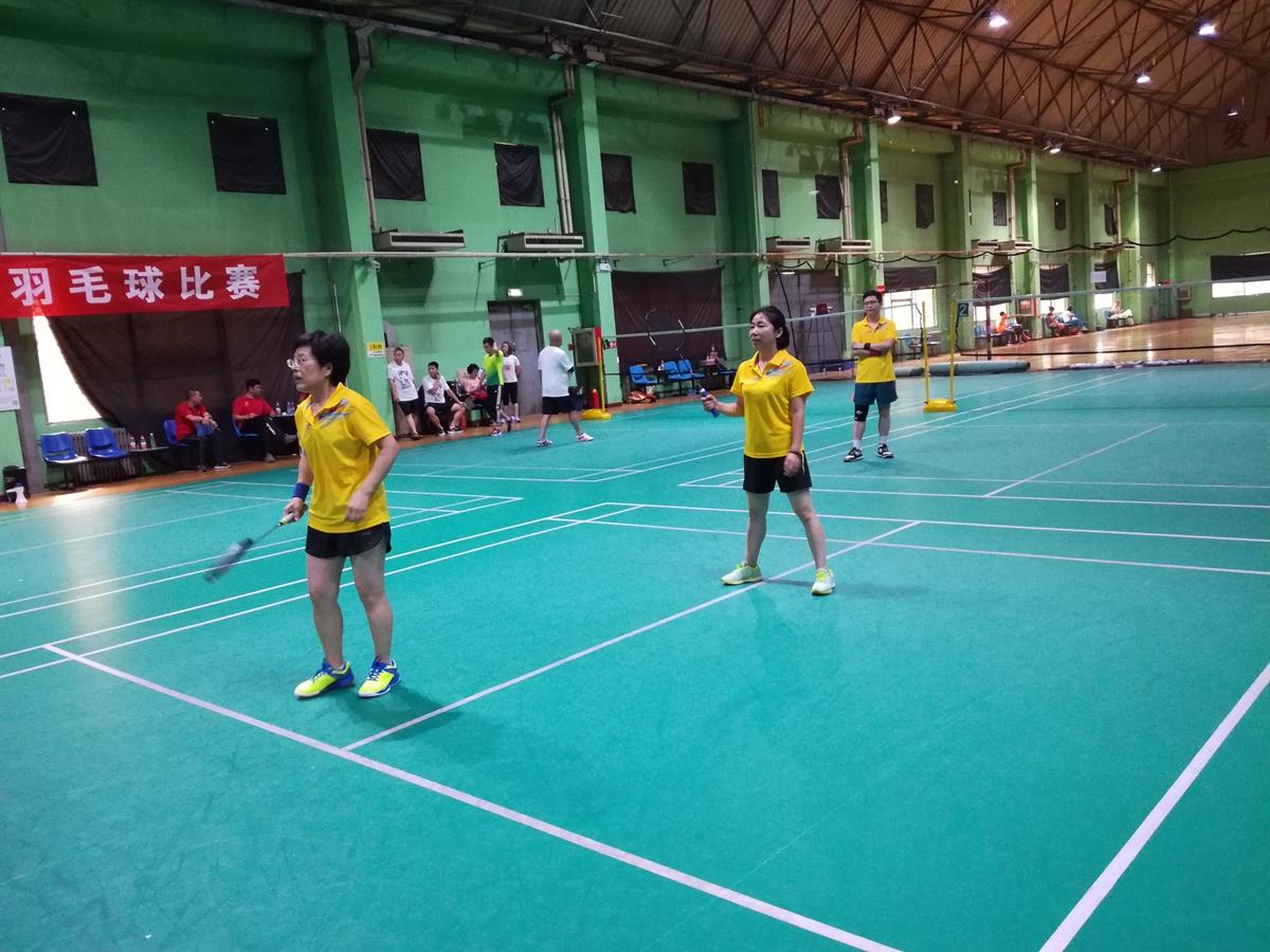 7月29日早上7点45分,在曲主席和付工的带领下我们一行人来到了位于方庄附近的颐芳园体育健康城,换好运动衣后,大家纷纷做起准备活动进行热身,工会给大家准备了红牛、北冰洋、矿泉水等等,一罐红牛下去大家的体力都更加充沛。早上8点,随着一轻工会主席的发言完毕,比赛正式开始,比赛采取三局两胜制,即同一组参赛选手依次进行男双、女双比赛,每场比赛各两轮,两轮全胜则为该局胜,若男双女双战成1比1平,则继续进行混双比赛,直到胜两局的队伍获得胜利。