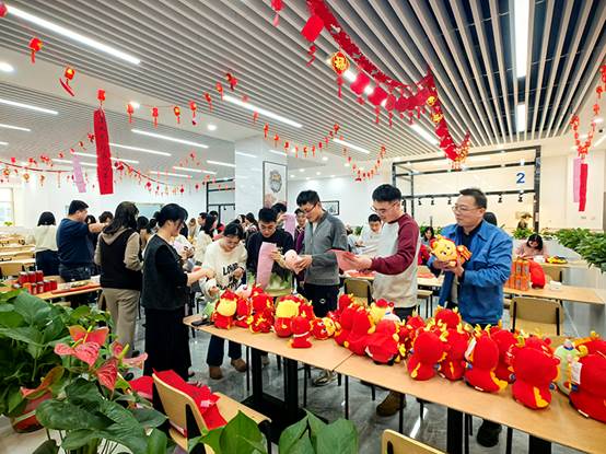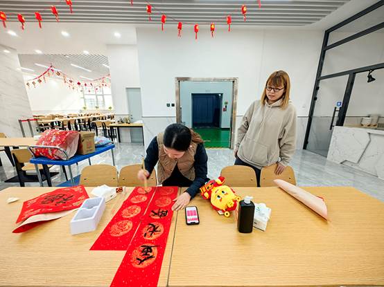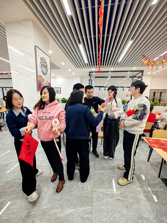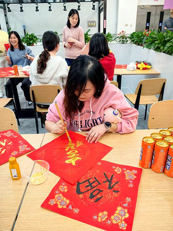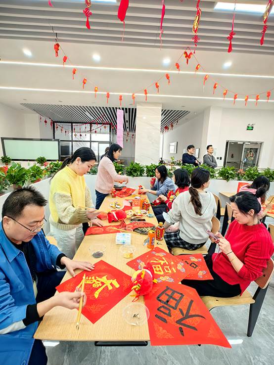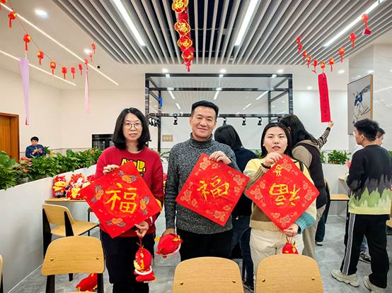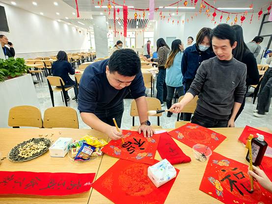 2月1日下午,在农历龙年即将到来之际,工会组织“迎春送福”联欢活动。来自各个部门的员工齐聚一堂,写“福”字,猜灯谜,开开心心过大年。