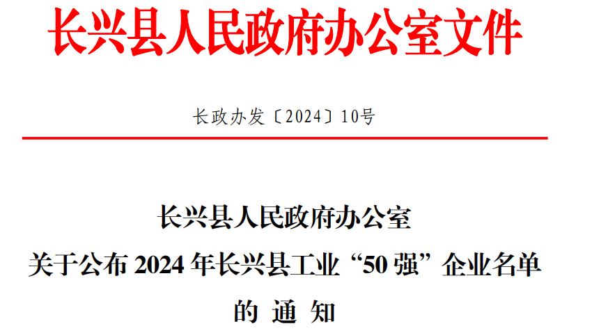 【喜报】大豪明德荣获长兴县2024年工业“50强”企业
